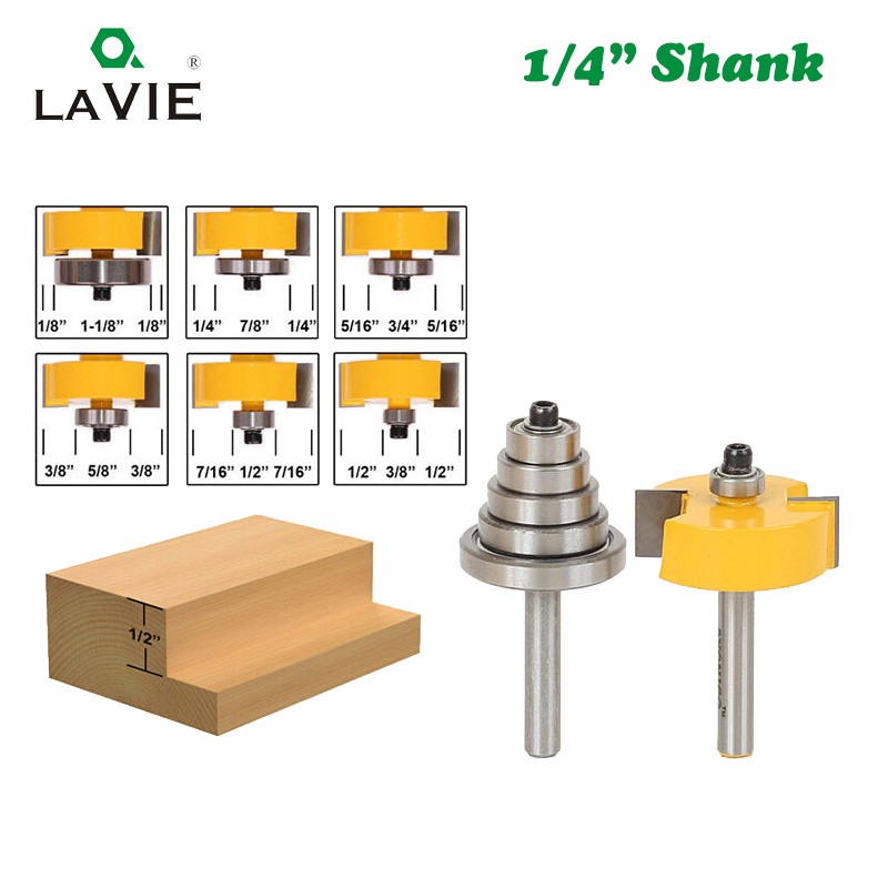 2pcs 1 4 Shank Rabbet Router Bit With 6 Bearings Set Adjustable
