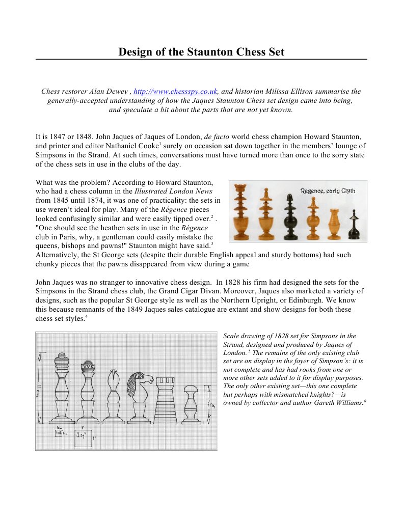 Staunton Chess Set Design For Jaques Of London Question