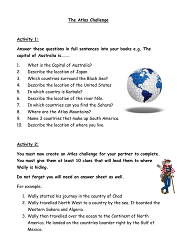 The lesson was created for a high abiity year 7 set and i have therefore also attached an atlas challenge for lower abilityyounger groups. Using an atlas from richard allaway using the contents page on which page would you find a map of. The index of an atlas gives shows where places can be found eg birmingham uk 520 north 10 west. The map skills worksheet comes with some blank templates for drawing your imaginary map on if you wish.