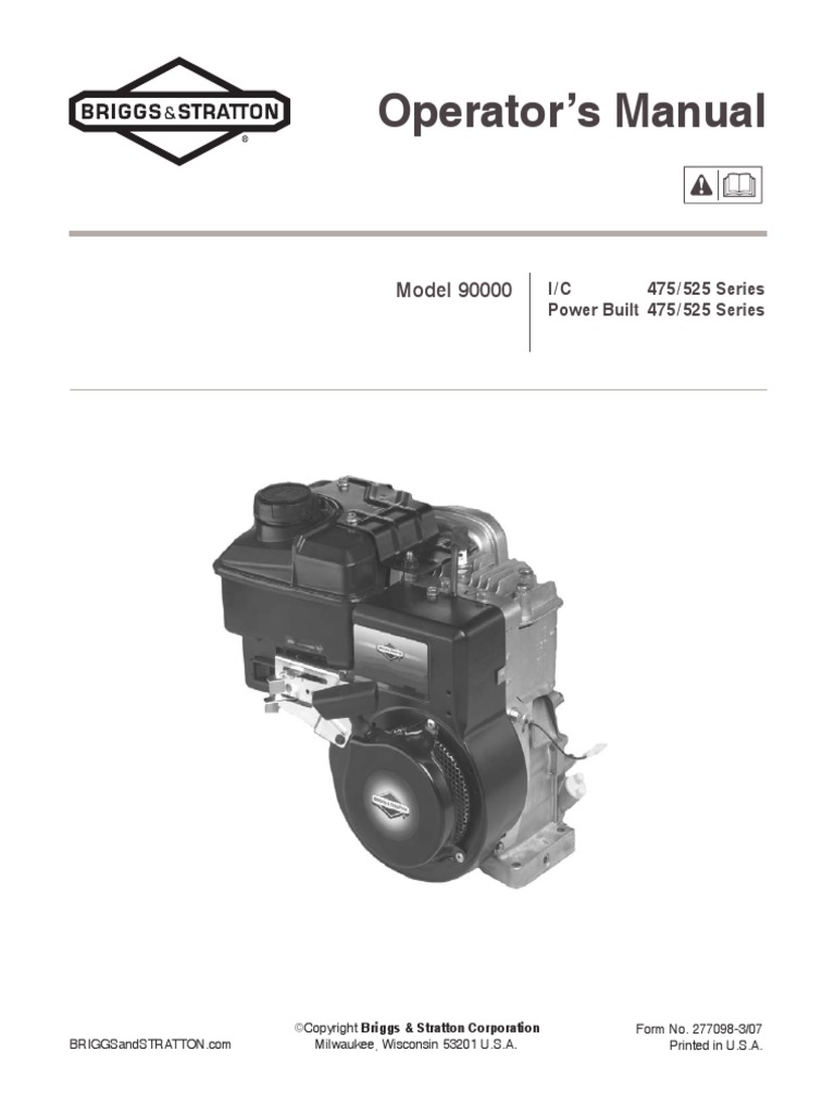 Briggs Stratton Model 90000 Operators Manual Motor Oil Gasoline
