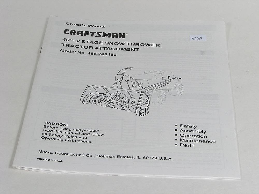 Lawn Tractor Snowblower Attachment Owner S Manual 47069 Parts