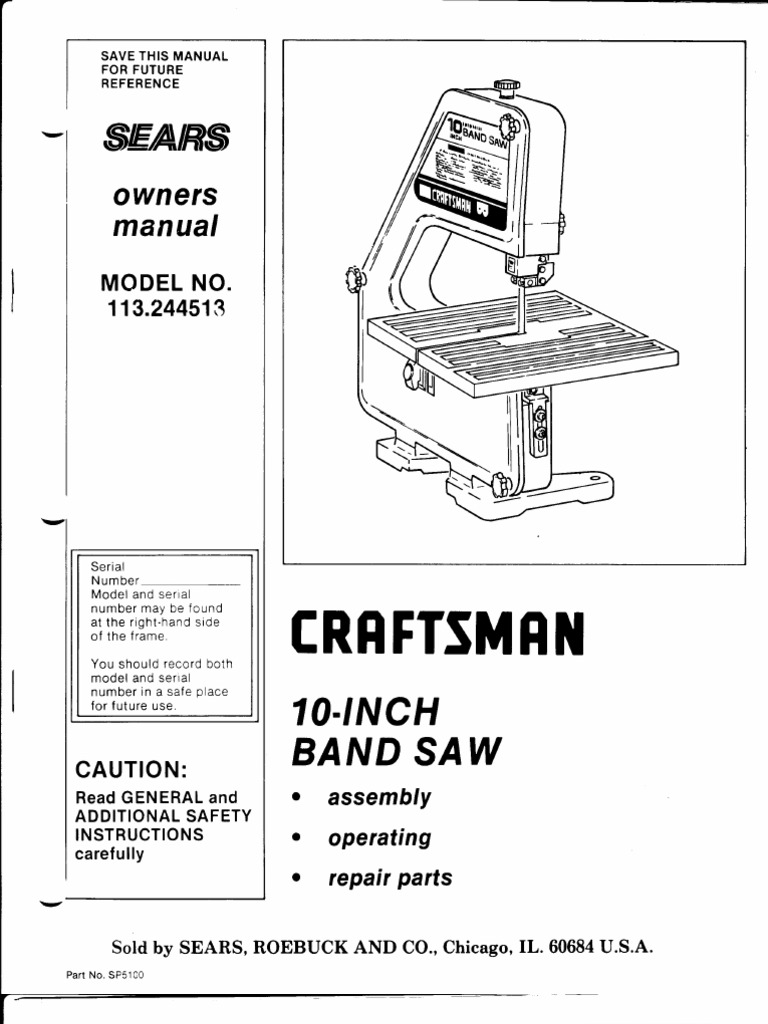 Sears Craftsman 10 Inch Band Saw Owner S Manual Electrical
