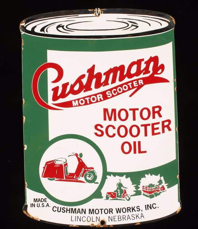 Porcelain Cushman Motor Scooter Oil Sign Advertising