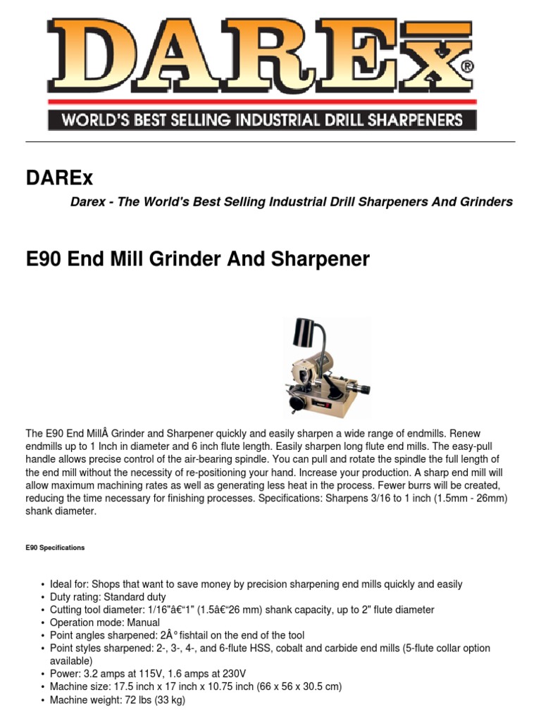 Darex Operators E 80 E085 E 90 Precision Endmill Sharpener Manual