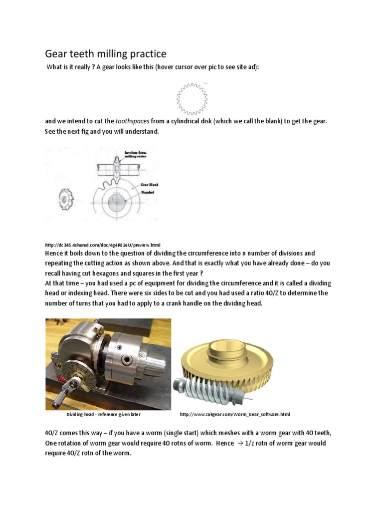 Gear Cutting By Differential Indexing On Milling Machine Workshop