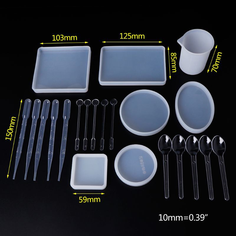 1 Set Silicone Mold Epoxy Resin Crafts Spoon Dropper Cup Mix Stick