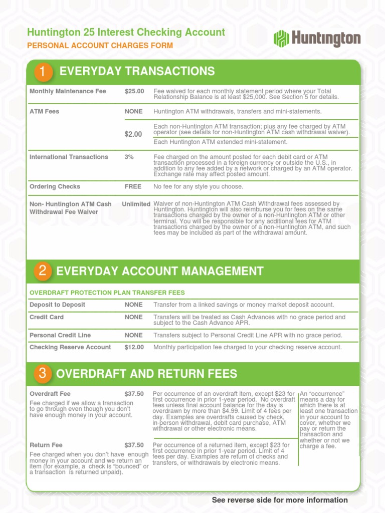 Huntington 5 Interest Checking Account Personal Account Charges