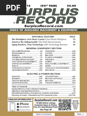 January 2016 Surplus Record Machinery Equipment Directory