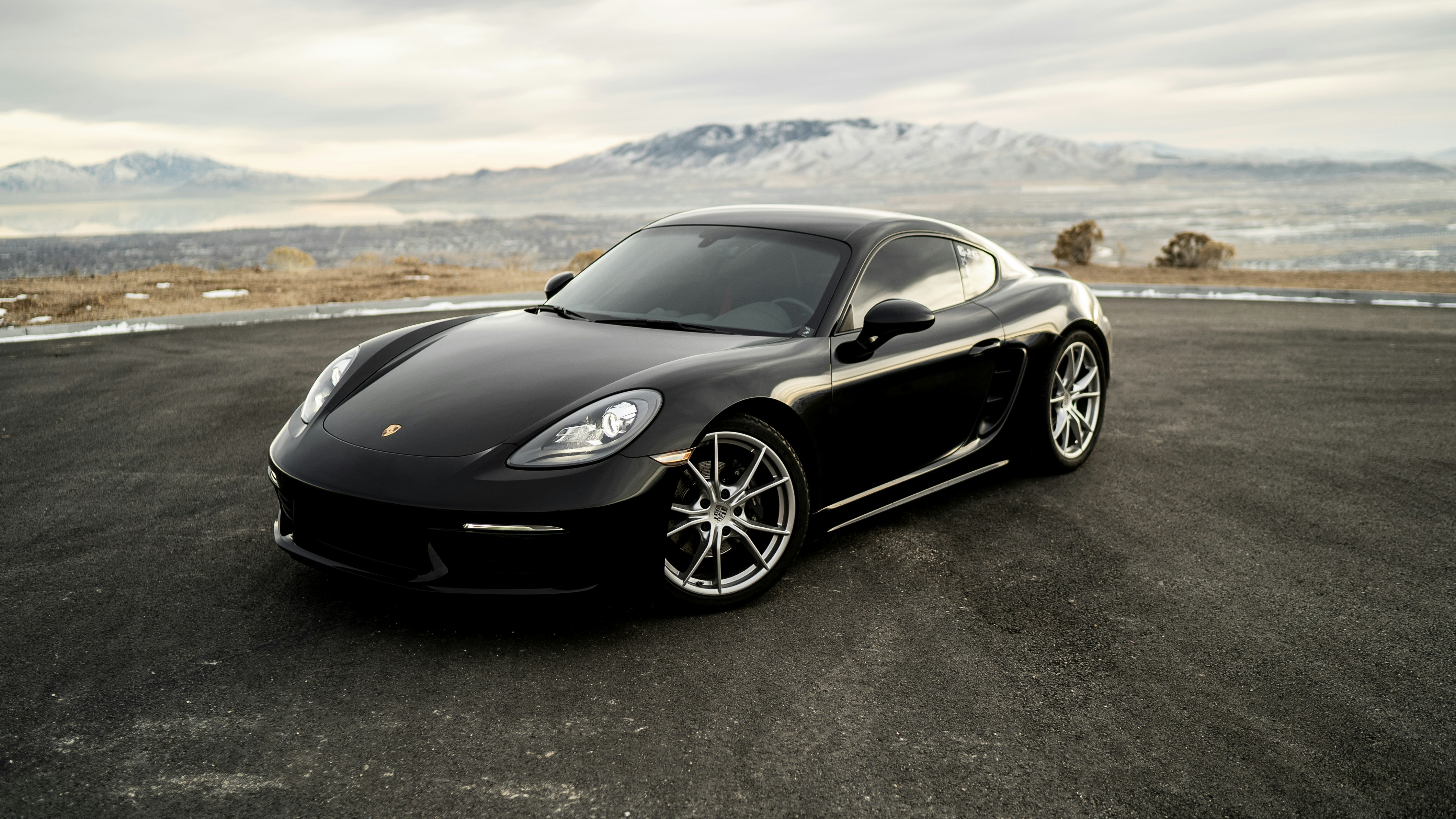 Black Car In The Dark With Lighted Daytime Running Lights Photo