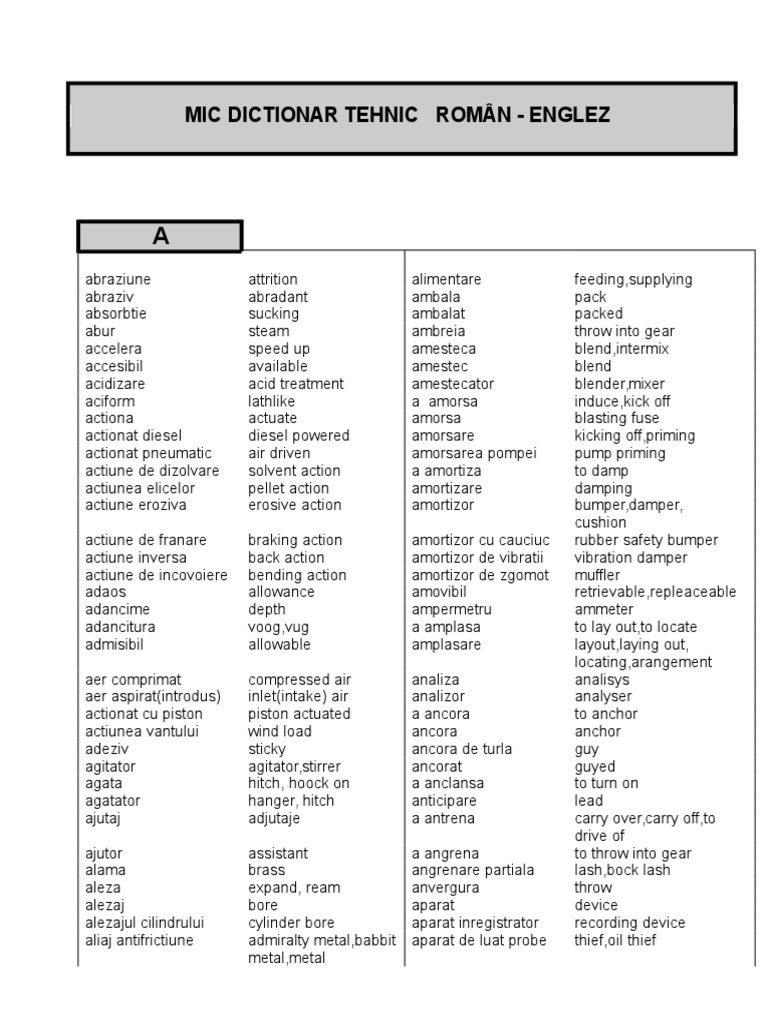 Romana Engleza Oil Dictionary Welding Piston