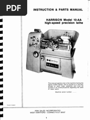 Harrison Model 10aa Lathe Pdf