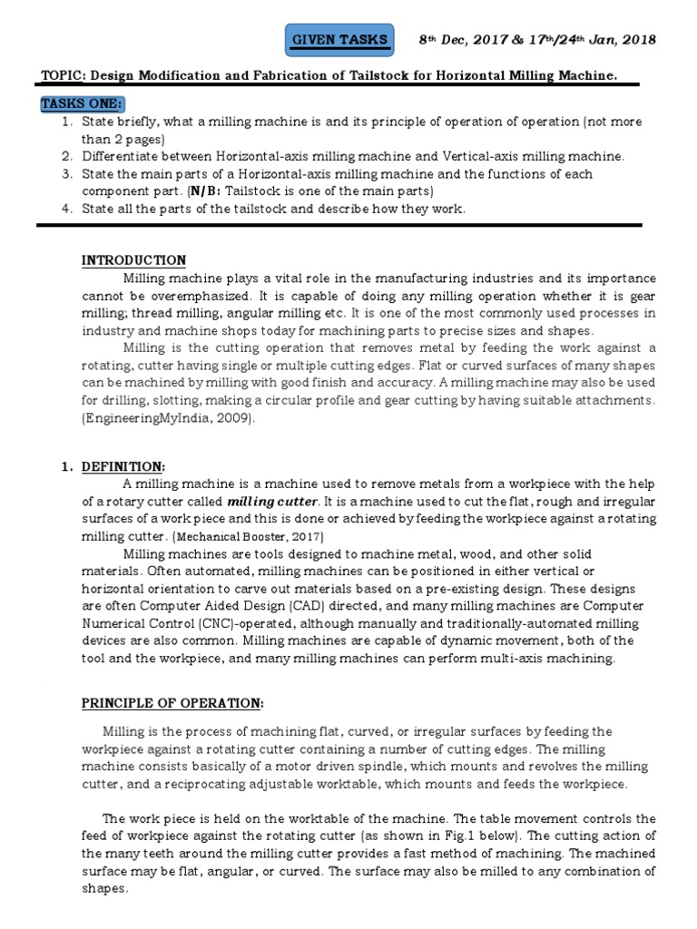 Task One Design Modification Fabrication Of Tailstock For