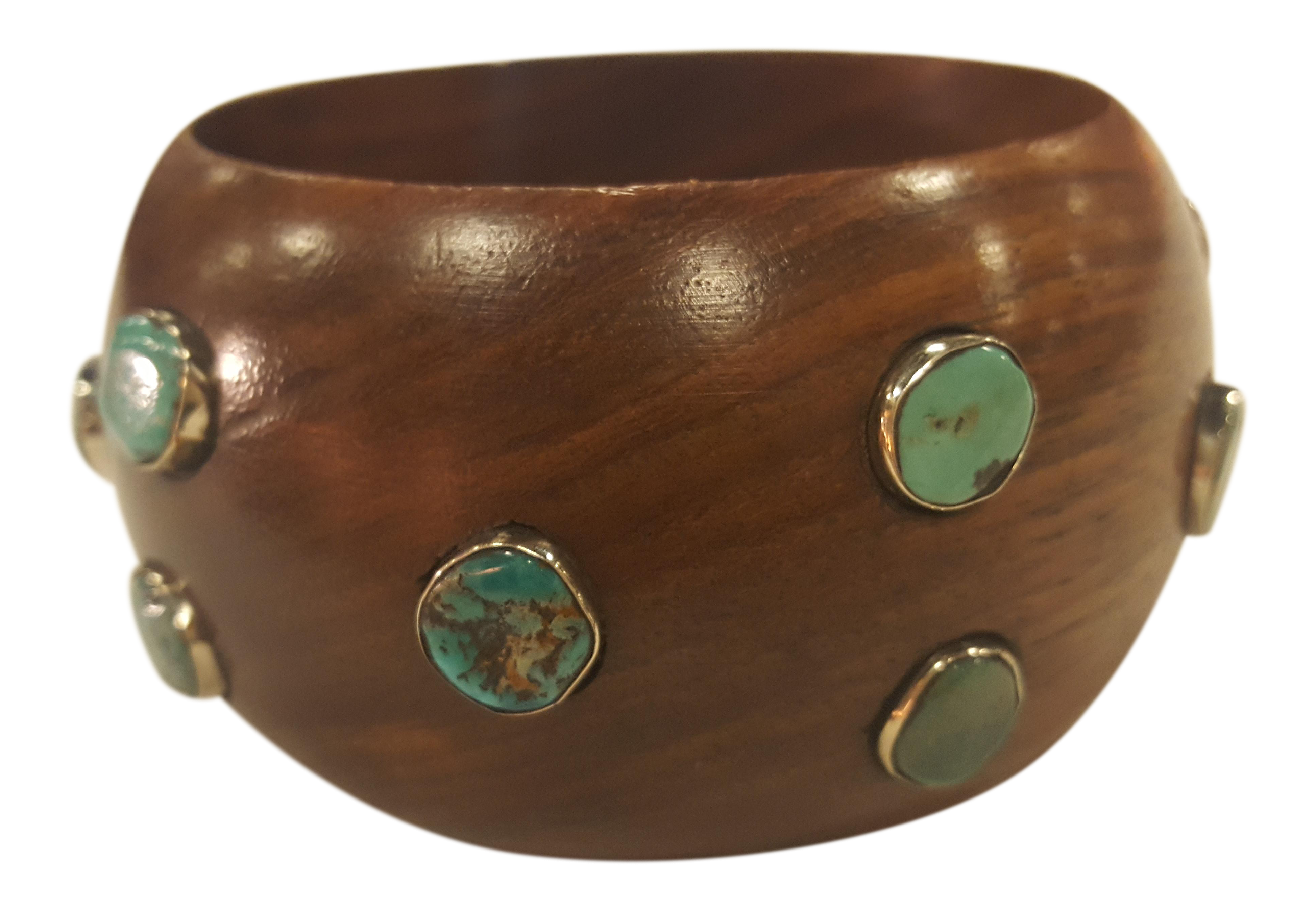Handmade Wood Bracelet With Turquoise Detail Chairish