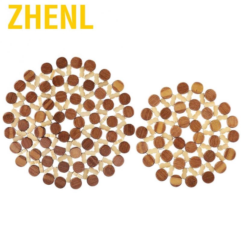 Zhenl Desk Table Mats Round Bamboo Placemat Insulation Pads