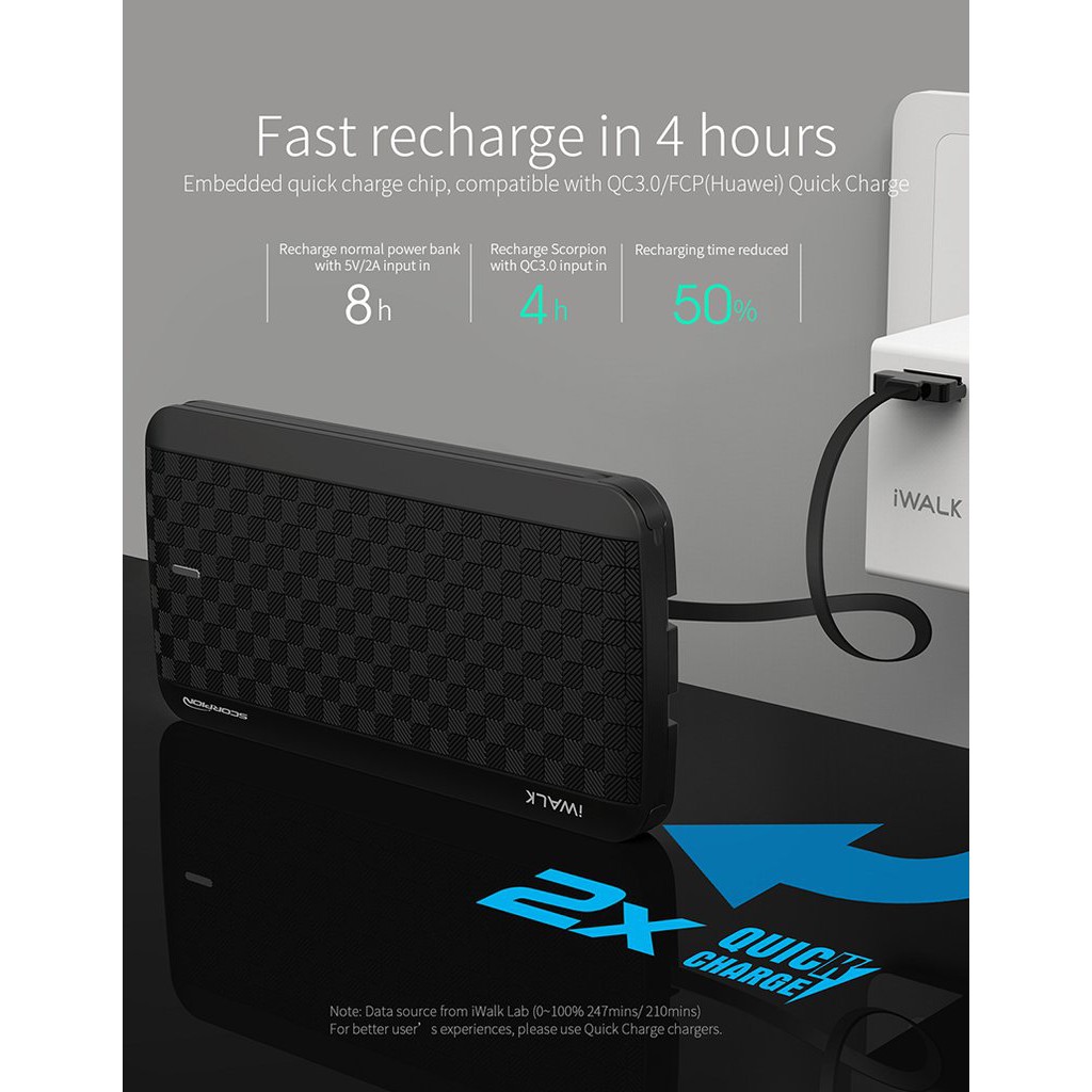Iwalk Powerbank Scorpion X 12000mah 2x Faster Charge Built In