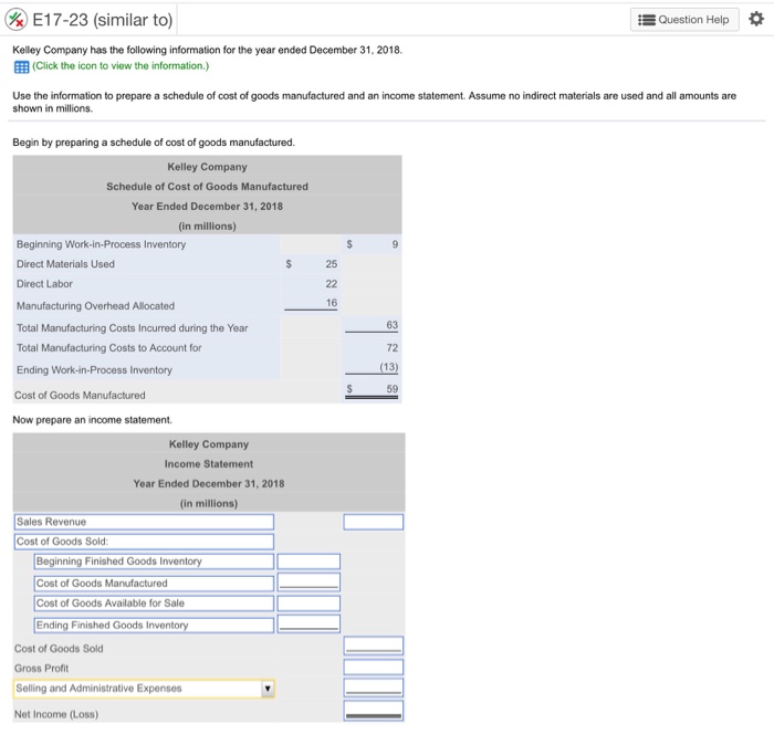 Solved E17 23 Similar To Questn Help Kelley Company Has