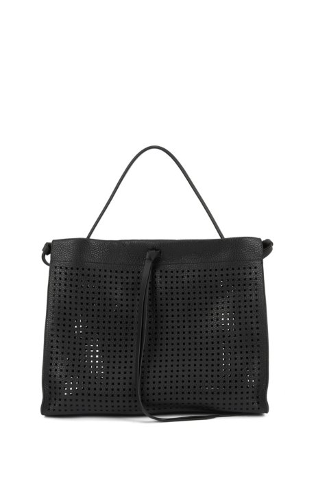 Boss Calf Leather Tote Bag With Laser Cut Micro Pattern