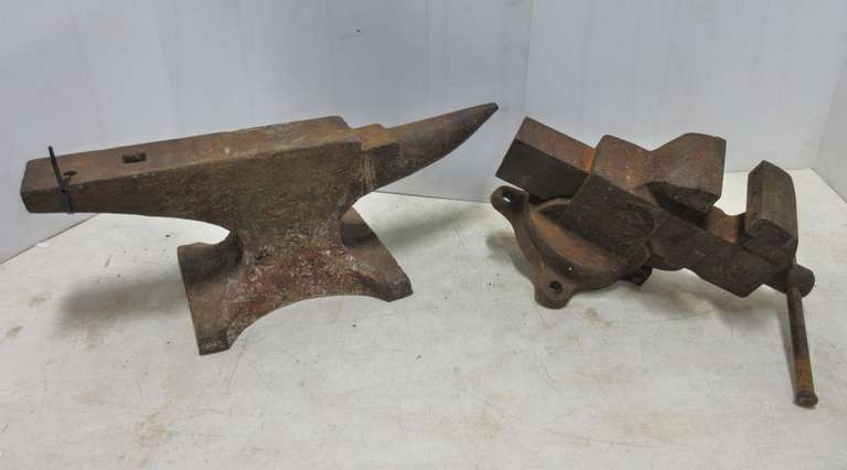 Albrecht Auctions Prentiss Bulldog Vise 90 Lb Anvil With Mouse