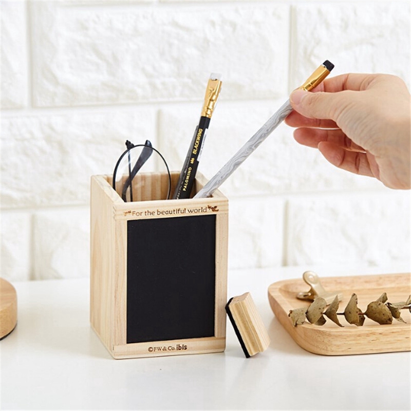 Wood Pencil Holder Desk Office Decoration Multi Functional Cute