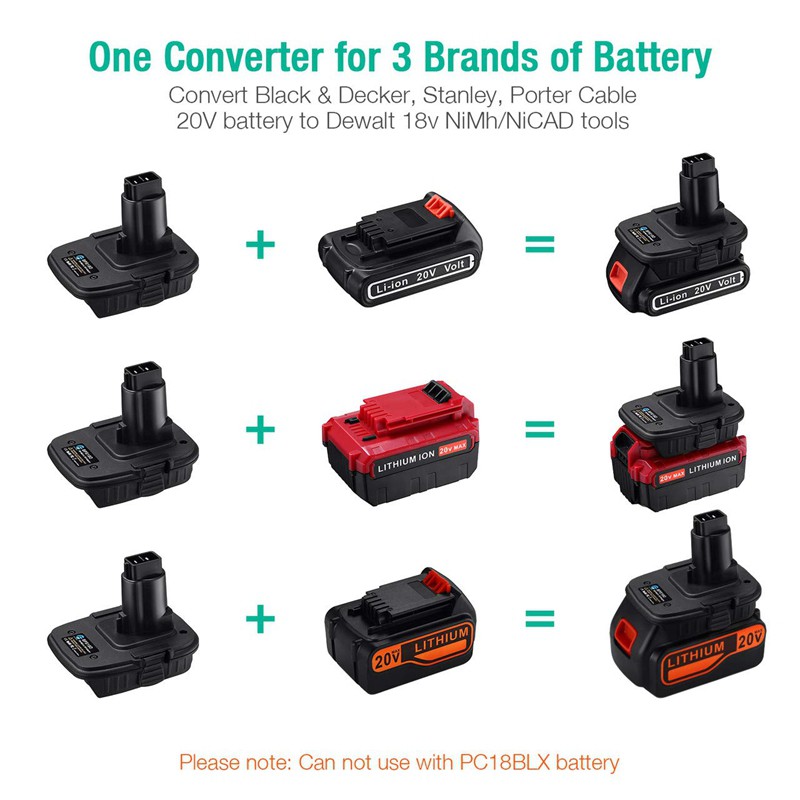 Lasica 20v Battery Adapter For Porter Cable 18v Tools Convert