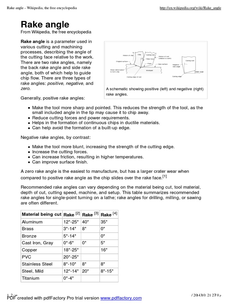 Rake Angle Metalworking Industries