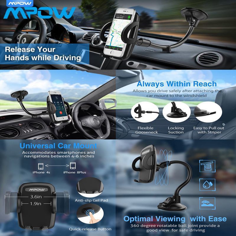 Mpow Car Phone Mount Windshield Cell Phone Holder For Car With