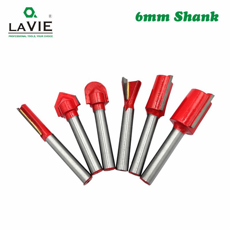 6pcs 6mm Shank Wood Router Bit Straight T V Flush Trimming