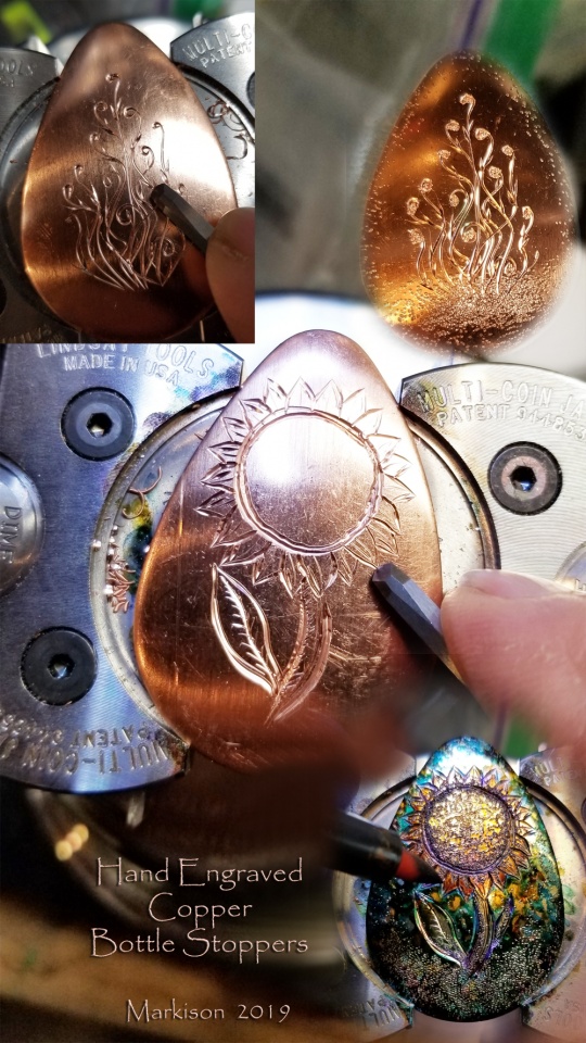 Hand Engraved Copper Bottle Stoppers Florals The International
