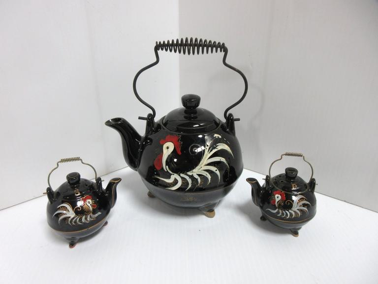 Albrecht Auctions Old Redware Three Legged Teapot With Matching