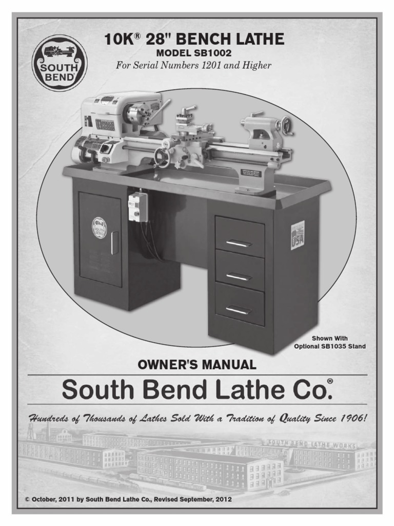 South Bend Sb1002 Lathe Owners Manual Mains Electricity Ac
