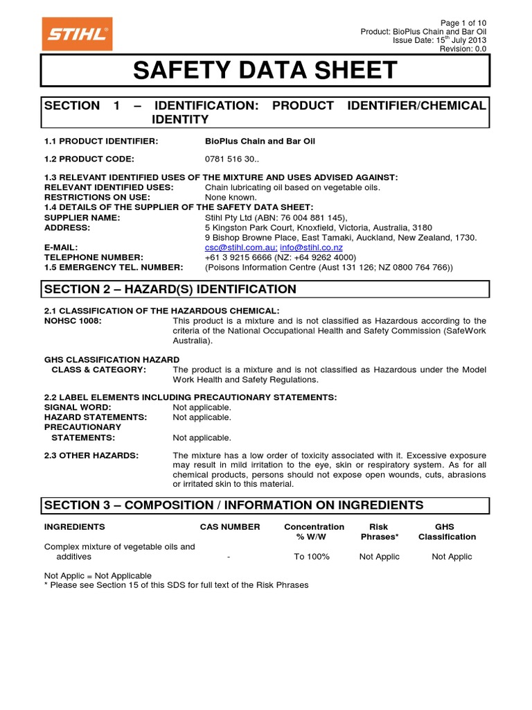 Stihl Bioplus Chain And Bar Oil Rev 0 0 0713 Dangerous Goods